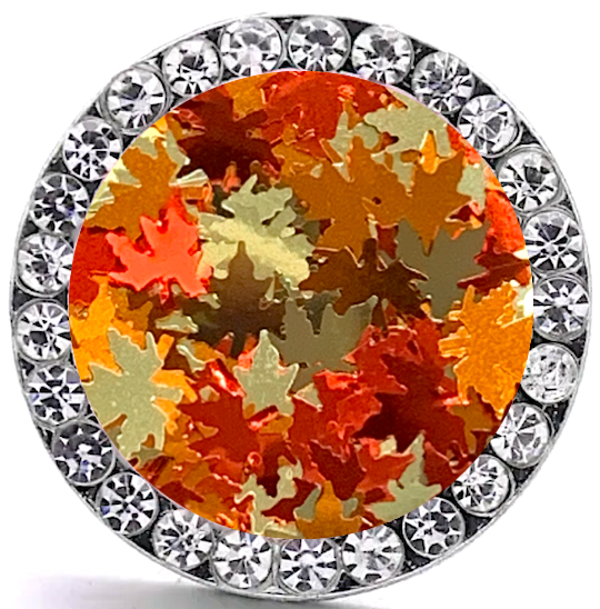 Elevate your wardrobe and showcase your unique style with the Fall Leaves Glitter Button Cover today!