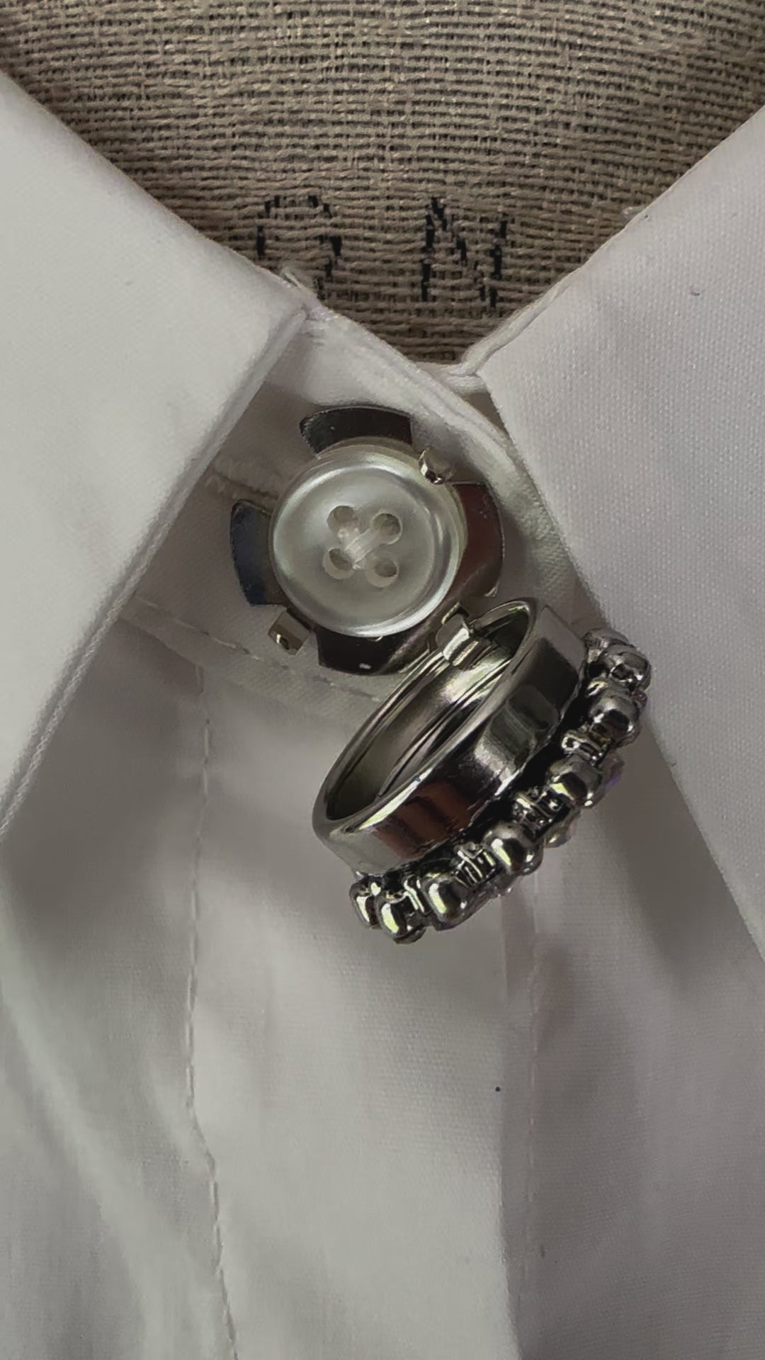 Choose the Iridescent Crystal Flower Button Cover for a stylish transformation that will leave a lasting impression, making your outfits uniquely yours.